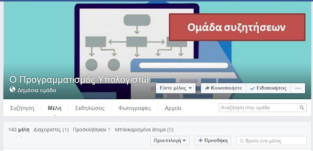 Η παραπάνω ομάδα συζητήσεων του Facebook είναι μέρος του Μαζικού, Ελεύθερου, Διαδικτυακού Μαθήματος (Massive, Open, Online Course – MOOC) “Ο Προγραμματισμός Υπολογιστών για τις Πανελλαδικές των ΕΠΑΛ” που προφέρεται εδώ και δύο χρόνια (ελεύθερα και δωρεάν) στην πλατφόρμα της Udemy (κλικ εδώ).